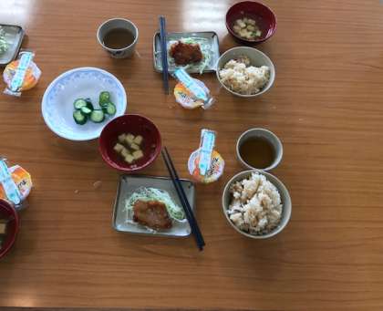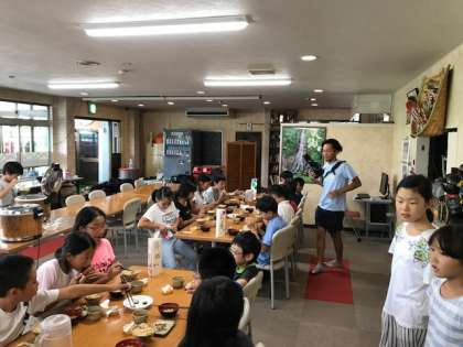 林間学習最後のご飯は山菜炊き込みご飯です。みんな残さず食べることができました。