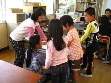 先週の木曜日は、6年生が大活躍でした。たてわり班活動の第1回目!自分たちの伝えたいことがなかなか伝わらず、何度も「聞いてや〜。」と声をかけて、優しく教えている姿が見られました。ある6年生の感想。「めっちゃ大変やった。なかなかいうこと聞いてくれへんし・・。」「とにかく疲れた。」でも、ものすご〜く充実した5時間目でした。