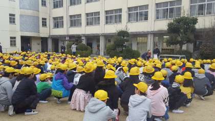 近畿地方に大きな地震が発生したことを想定し避難訓練を行いました。全員で運動場に避難した後は、校長先生より「津波避難標識」について教えていただきました。子どもたちのすごす地域では見かけることはあまりありませんが、いつどこで地震に遭遇するかは分かりません。いつでも正しい行動ができるように覚えておくとよいですね。