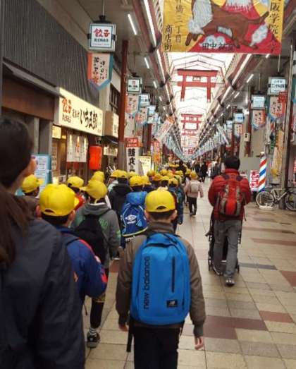 今日は社会見学で大阪くらしの今昔館に来ています。行きは南森町駅で降り、天神橋筋商店街を歩いて今昔館に向かいます