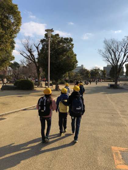 戦跡めぐりを終え、各班それぞれのルートで阿倍野小学校に向かいます。