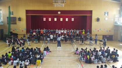 卒業式まであと10日。いよいよ6年生も卒業です。いろいろお世話になった6年生の卒業を祝い、「卒業を祝う会」を行いました。1〜6年生からは、お祝いの呼びかけや感謝の歌を学年ごとに贈りました。6年生からは、お礼に合奏を聞かせてもらいました。さすが最高学年!とても素晴らしかったです。