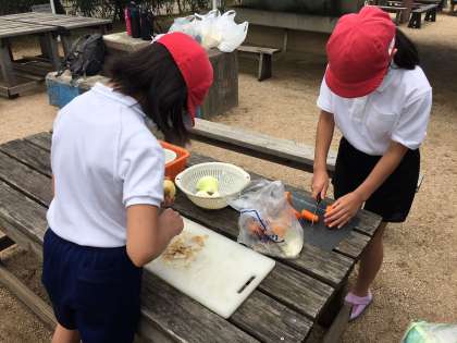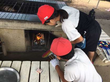 さあ、飯盒炊さんの始まりです!班で手分けをして、カレーを作ります。