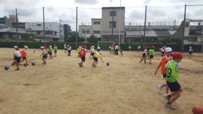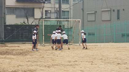 今日は3・4年生を対象に「夢・授業」を行いました。J.LEAGUE™のセレッソ大阪よりサッカースクールコーチと選手に来ていただき、サッカーを教えていただきました。ペアやグループで楽しく練習することができました。