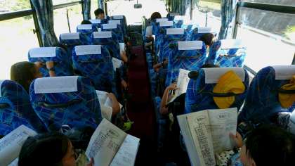 バスレク係が選んだ曲を流して、みんなでカラオケ大会です。