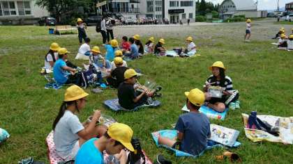 活動班のメンバーとおいしくお弁当を食べています。