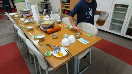 お風呂から上がり、スッキリしました。今は、食事係がみんなの為に食事の準備をしています。