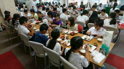 「さけでご飯がすすむわ〜。」「さつまいもがあまーい。」