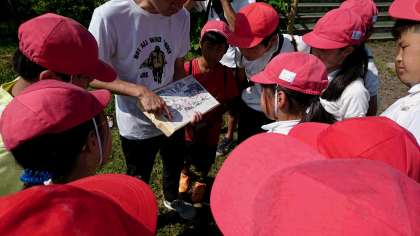 班のみんなで、地図を見ながら、スタートから合計5つのポイントを目指します。各ポイントで、先生達がゲームを出題。クリアしたら、カレーの食材をゲットできます。さあ、みんなで力を合わせて、全食材を手に入れるぞ!