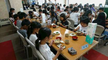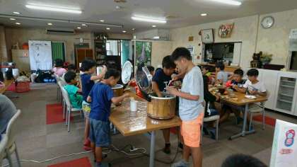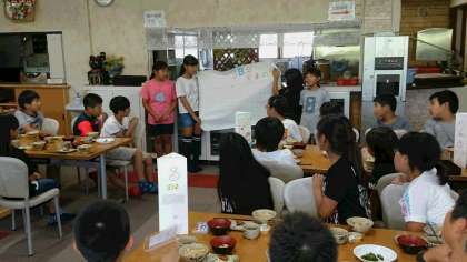山菜ごはんが大人気で、おかわりをする子がたくさんいます。なんと、5杯以上食べた子も!