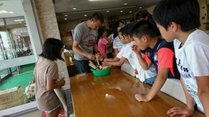 「ごちそうさまの歌」で挨拶をした後、1日目に作って毎食使ったお箸を受けとりました。