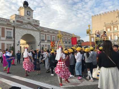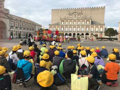 最後はシベレス広場に集合し、みんなでショーに参加しました。全力で楽しんだスペイン村を出発し、これからバスでみち潮に向かいます。