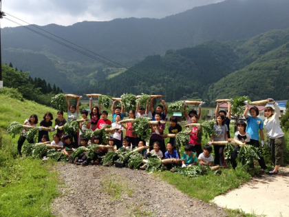大きな大きな大根を抜きました。持って行ったビニル袋からはみ出すほど、重たい大根を抱えて、宿舎までの斜面をあがりました。