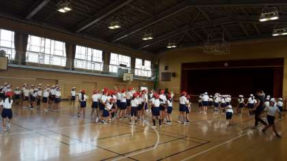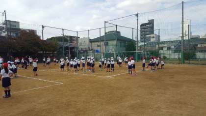 学期に1回の「なかよし集会」も今回が2回目。今日は1年生・4年生、2年生・6年生、3年生・5年生がペアになってなかよく遊びました。ドッジボールに鬼ごっこ、じゃんけん列車などいろいろな遊びをして楽しみました。