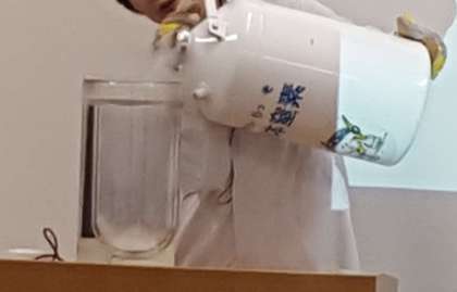 理科の学習で大阪科学技術館に来ています。まずは実験コーナーです。
