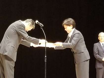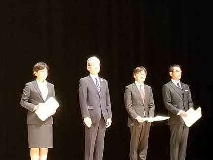 今回の認定を受け、本日実施されました「第44回全日本教育工学研究協議会全国大会(川崎大会)」の開会行事で、学校を代表し学校長が表彰を受けました。これからも本校教職員一同、更なる飛躍のために研究活動を続けてまいりますので、どうぞよろしくお願いいたします。