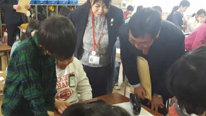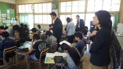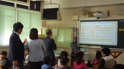 両日とも、電子黒板・タブレットなどのICT機器を活用した授業や簡易なロボットを用いたプログラミング学習をご参観いただきました。参観後は、本校の実践に対するご感想や今後の大阪市立学校でのICT活用に対するご意見などをいただきました。