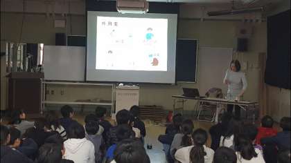 学校薬剤師の先生にお越しいただき「正しい薬の使い方講座」を行いました。「正しい薬の使い方講座」とは、日本薬剤師会が児童・生徒にくすりへの正しい理解を深めるために行っているものです。