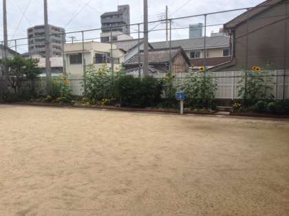 学校西運動場北側にある花壇は、日々、「阿倍野女性会」の皆さんが、手入れをしてくださっています。