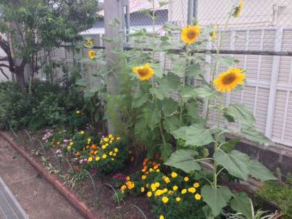夏休み中も、手入れをしてくださり、ヒマワリなどの花が元気に咲いています。