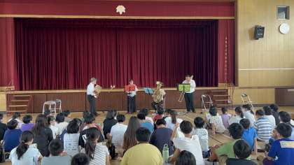 6年生の保護者の方に音楽家の方がいらっしゃって、ご厚意で音楽鑑賞会を開いてくださいました。1人ずつ楽器の紹介をしてくださったり、いくつかの曲を演奏してくださったりして、子どもたちは夢中で聞き入っていました。