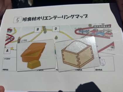 ?飯ごう炊さんの食材をゲットするために、食材オリエンテーリングをしています。ミニゲームにクリアすると、食材と交換できる食材カードをゲットすることができます。