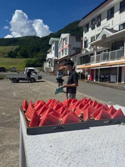 おやつタイムにスイカをいただきました。 みずみずしいスイカが疲れた体に染み渡ります!