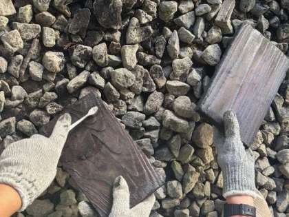 黒い板を、歯ブラシやタオルで一生懸命磨いてツルツルにして、絵や文字を描けるようにします。