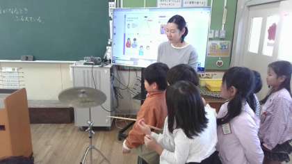 音楽科「ねいろとつよさ」では、さまざまな楽器の音色を確かめました。「ぜんそうきょく」の鑑賞では、シンバルの音にあわせて手を打ったり、音色の強さに気を付けて聴くことができました。