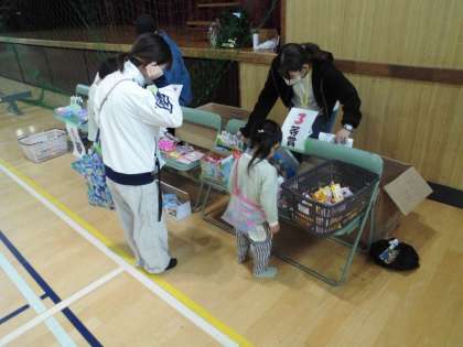当日は朝からあいにくの雨模様でしたが、子ども達はストラックアウトや段ボール迷路などのゲームを楽しんでいました。また、たこ焼きやベビーカステラなど食べ物のブースもたくさんあり大盛況でした。久しぶりに参加したという方からは、「お店が増えていてうれしい!」という声もありました。