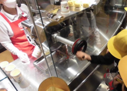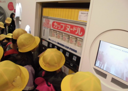 社会科「くらしを支える工業生産」で学習した食料品工業について調べるため、カップヌードルミュージアムに行きました。世界に一つだけのカップヌードル作りを体験し、展示物から大発明をした創業者の努力と工夫を知ることができました。