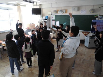 あべっこ班の友だちと一緒に、先生たちが考えたゲームコーナーを回りました。校舎中にはクイズが隠されていて、みんなで相談しながら問題に答えていました。また、講堂ではグループごとに決めたゲームで遊び、仲を深めることができました。