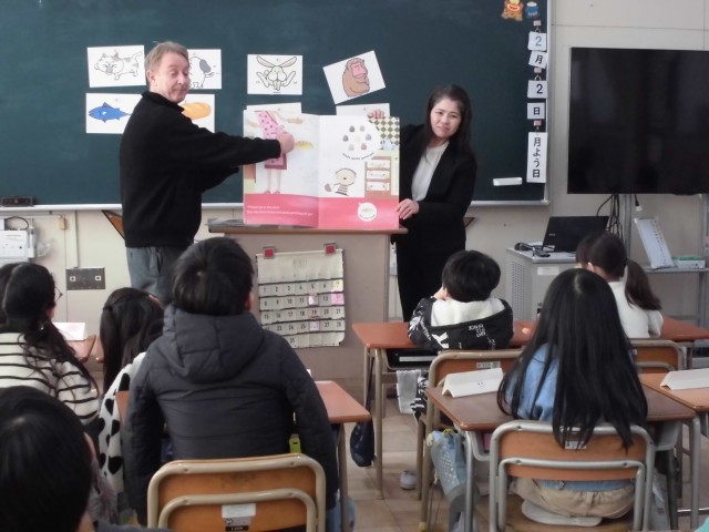 2月2日に、ネイティブの先生に来ていただいて「英語レッスン」をしていただきました。ジェスチャーをしたりカードを使ったりしながら、楽しく英語に親しむことができました。授業が終わってからも、子ども達は教えていただいた英語を話していました。