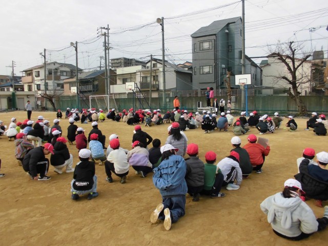 3学期のなかよし集会では、2年生と一緒にドッジボールやだるまさんがころんだをして楽しく交流しました。活動が始まると、4年生は2年生の様子をよく見ながら、「こっちだよ」「大丈夫?」と優しく声をかけたり、遊び方を丁寧に教えたりする姿が多く見られました。3回目のなかよし集会ということもあり、これまでの経験を生かして、自分たちから進んで関わろうとする姿が印象的でした。