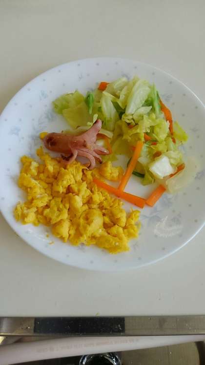 今回は、たまごや野菜、ウインナーを炒めて短時間で仕上げます。