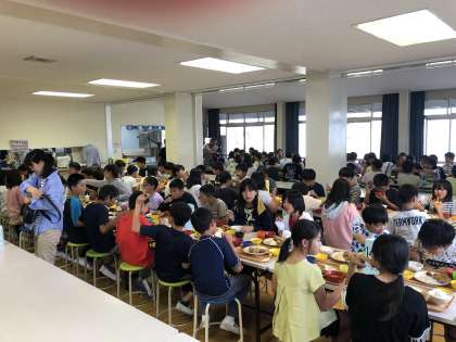 予定の時間通り夕食です。朝からたくさん活動したので、おなかぺこぺこ!