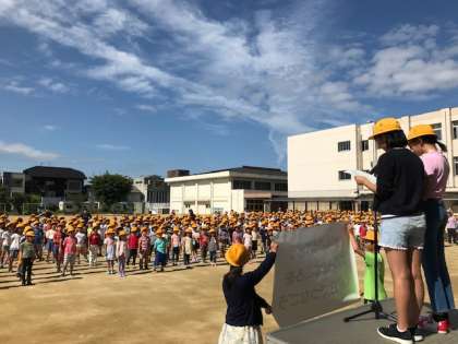 代表委員会のメンバーが児童朝会で全校児童に伝えてくれました。