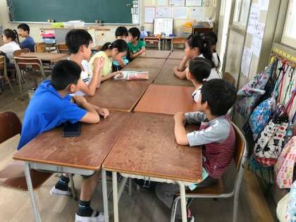 カードを作成したり、自己紹介をしたり、これから一緒に活動するグループの仲間と交流しています。さすがは、6年生!しっかりみんなをリードしてくれました。