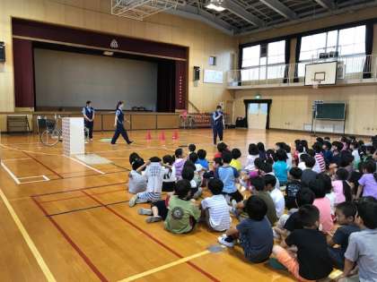 本日、警察の方々にご来校いただき交通安全教室が開かれました。