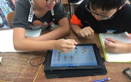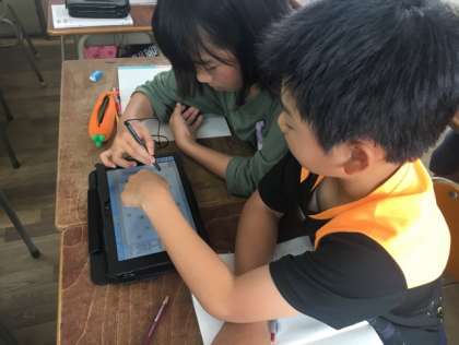 学習の際、タブレット端末を利用して行いました。