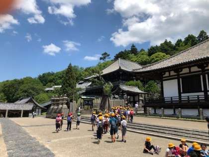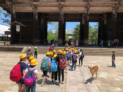 6月13日(木)5年生が遠足に行きました。奈良駅から奈良公園に行くまでに多くの鹿とすれ違いました。
