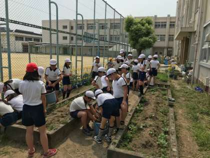 バケツ稲は総合的な学習の時間に取り組んでいます。