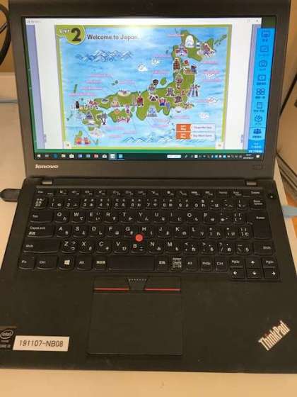 例えば、外国語活動の時間に動画を流したり、音声を聞いたりして学習する際に使用しています。