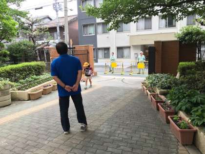 正門では、管理作業員さんが「おはよう」と元気に声をかけてくれます。