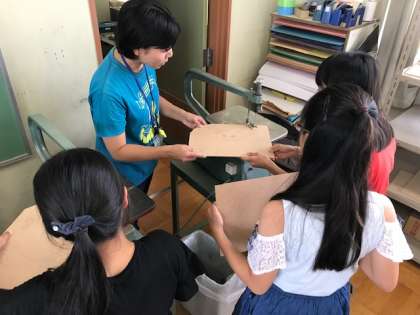 5年生が図画工作科の学習で、「糸のこ」を使って活動をしています。