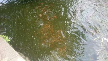 阪南小学校の正門にある池に、小さな金魚がたくさん増えました!