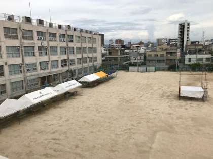 地域の皆様のお力により、会場の設営も着々と進んでおります。