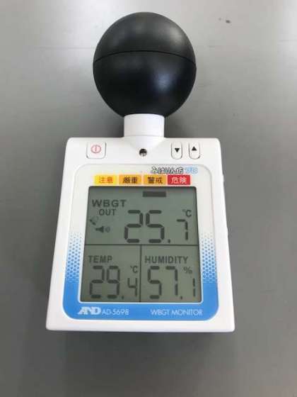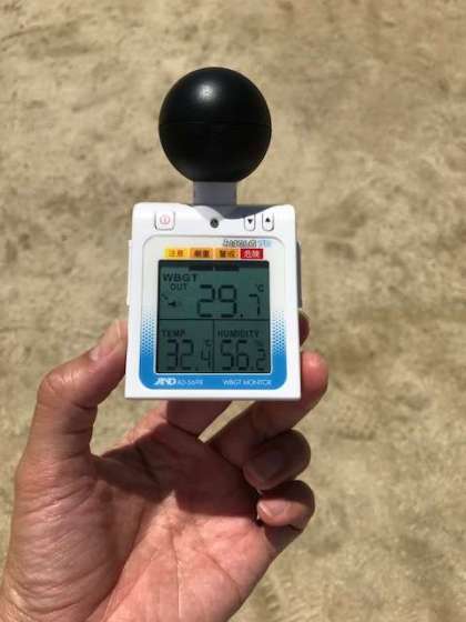 阪南小学校では、児童の熱中症対策のため、「熱中症指数モニター」を使って、休み時間に運動場の暑さを測っています。