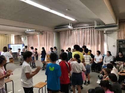 実際に体でリズムをとったり、扇子をもって踊りました。