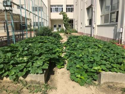 2年生が育ている「さつまいも」のつるがとても成長しています。